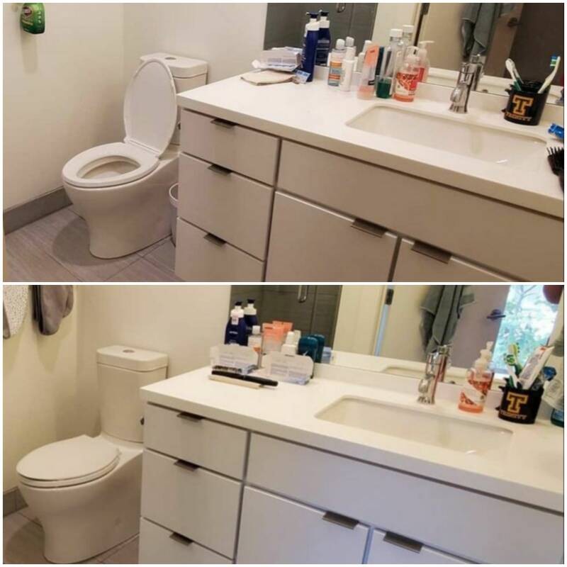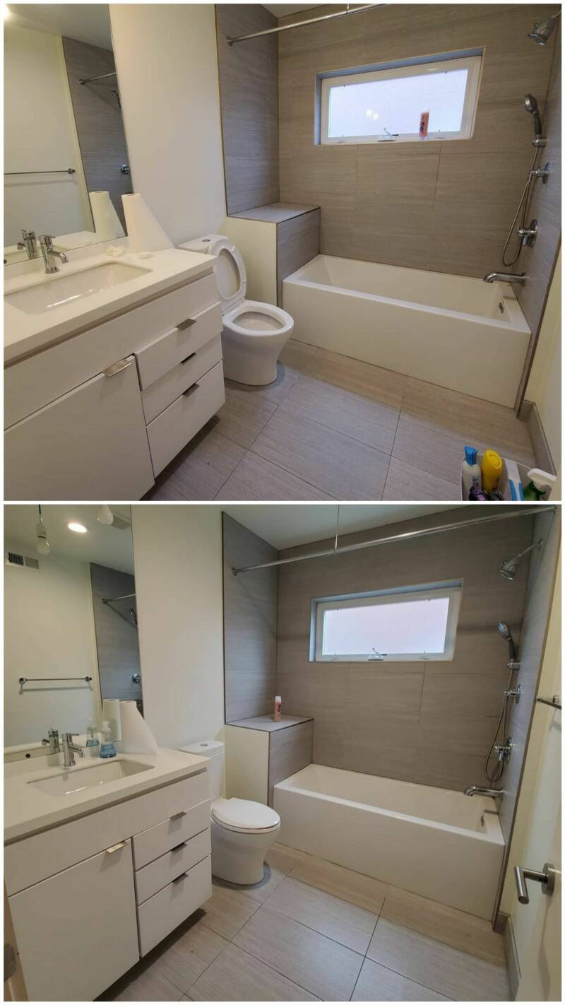 Before and after of a Move Out Bathroom Cleaning